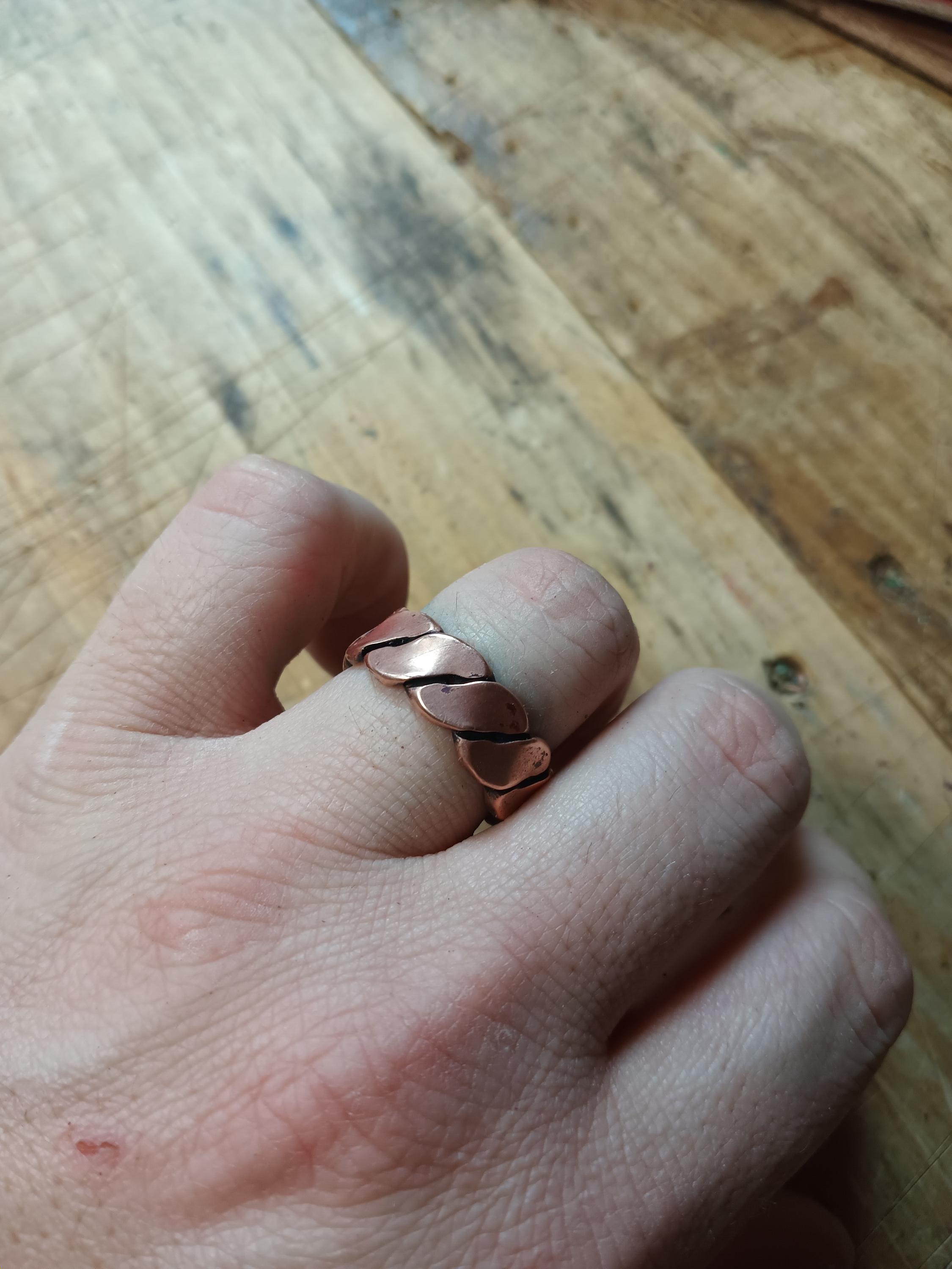 This Antiqued Copper Ring Has Been Hammered Flat From American Sourced, Twisted 8 Gauge Copper Wire, Antiqued then Given A Light Buff; Giving The Band Ring A Storied Appearance. These Are Sized To Fit And Are Approximately 3/8th Inches Wide. As With Every Item That Has Been TwistedByKen, Satisfaction Guarantee is Included.