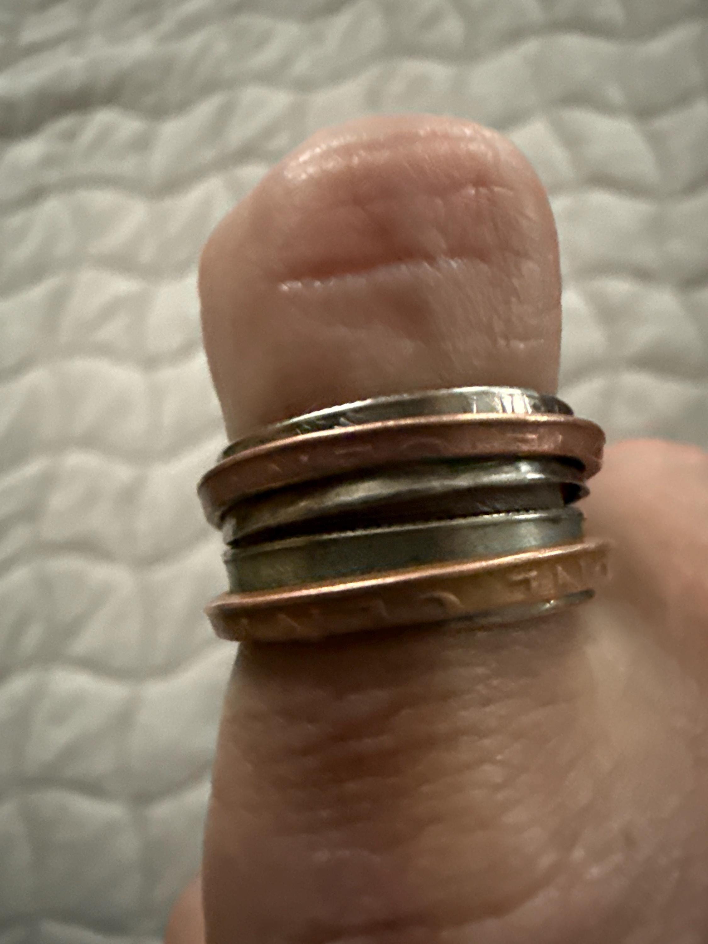 Handmade Dime and Penny Coin Spinner Fidget Ring - Custom Size Up to US 10 - Twisted By Ken TBK006