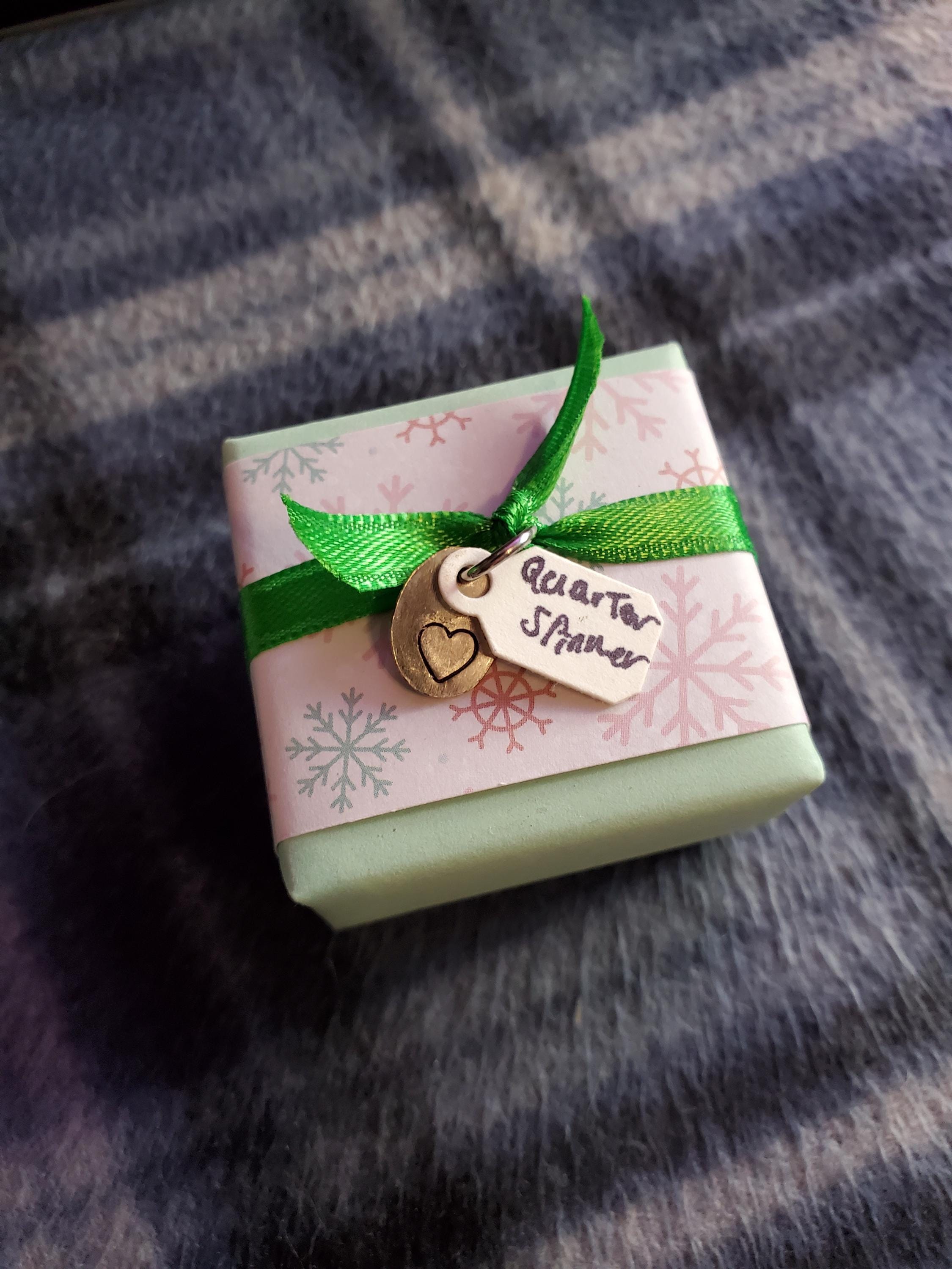I'm delighted with this quarter penny spinner ring! Fits beautifully, smooth on the inside and comfortable to wear. Packaged like a little present, was a delight to open! Many thanks!